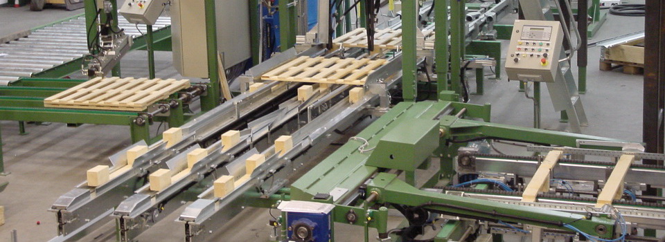 Palettenmaschinen für Leistungen bis zu 2.400 Paletten pro Schicht. Die Linien werden individuell zusammengestellt und können für höchste Automatisierungsgrade ausgelegt werden. Mit einem Mitarbeiter können so 2.000 Paletten pro Schicht erstellt werden, komplette Anlagenumstellungen erfolgen in wenigen Minuten.